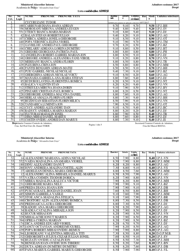 Rezultate Academia De Poliţie 2017 Listele Complete Cu Cei Admisi La Poliţie Pompieri Jandarmi