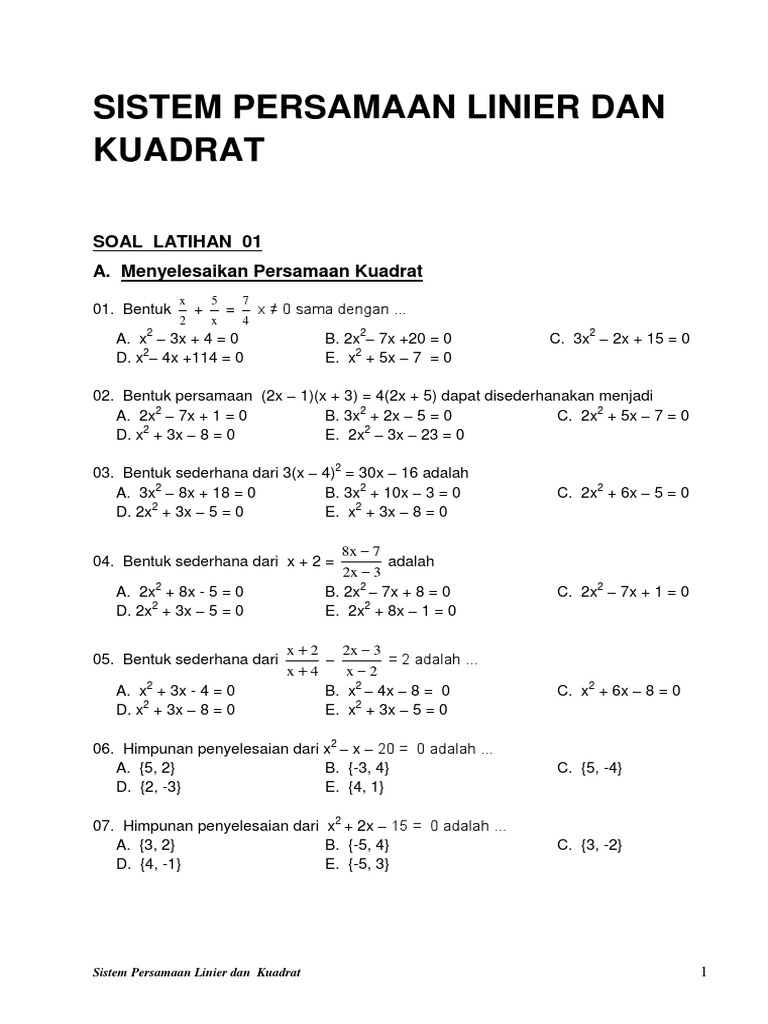 Doc Persamaan Kuadrat Bentuk Umum Persamaan Jipenk Hose Academia Edu