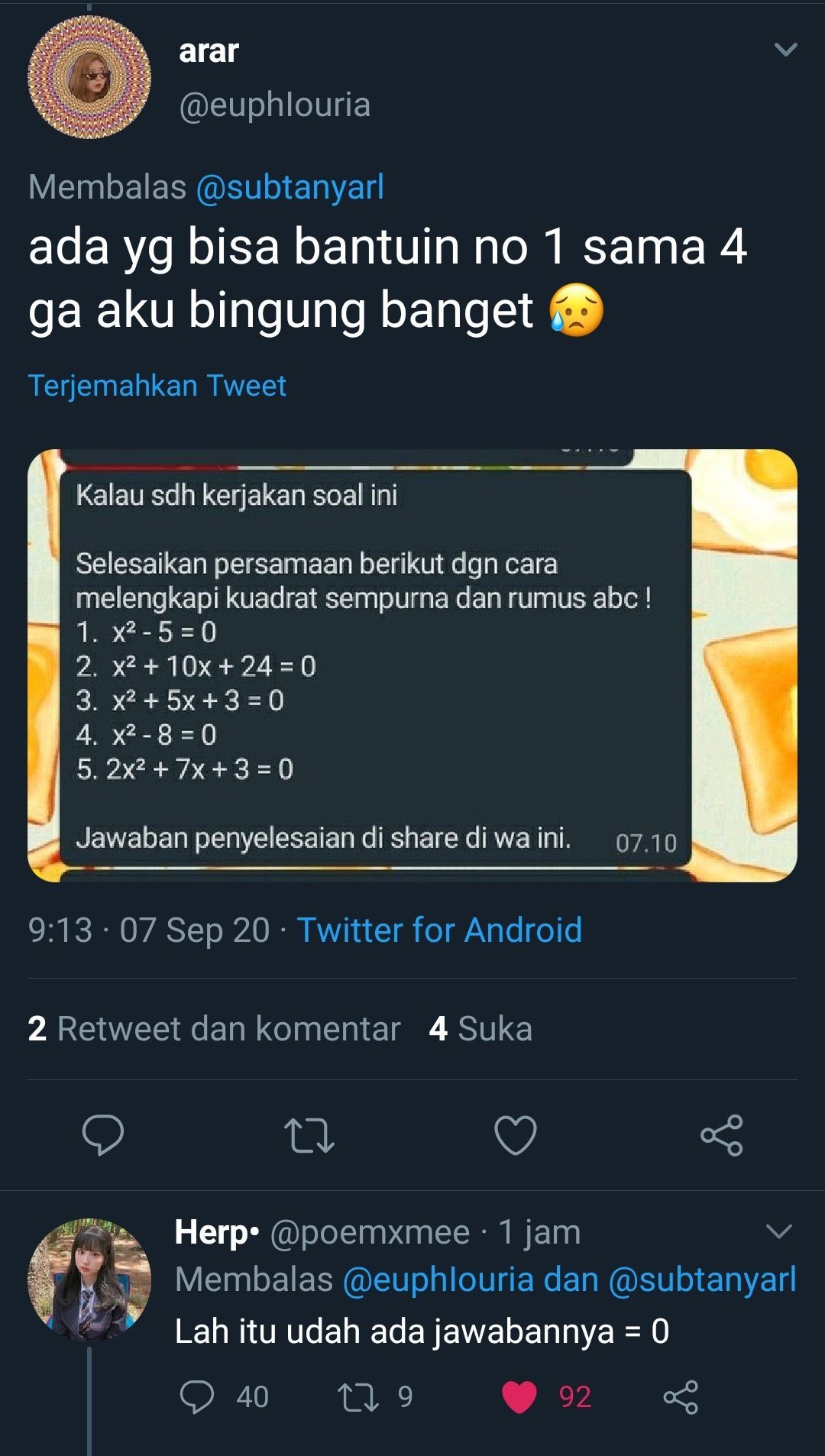 Jawaban Soal Tentukan Penyelesaian Persamaan Kuadrat Belajar Dari Rumah Tvri Sma Kamis 30 April Tribunnews Com Mobile