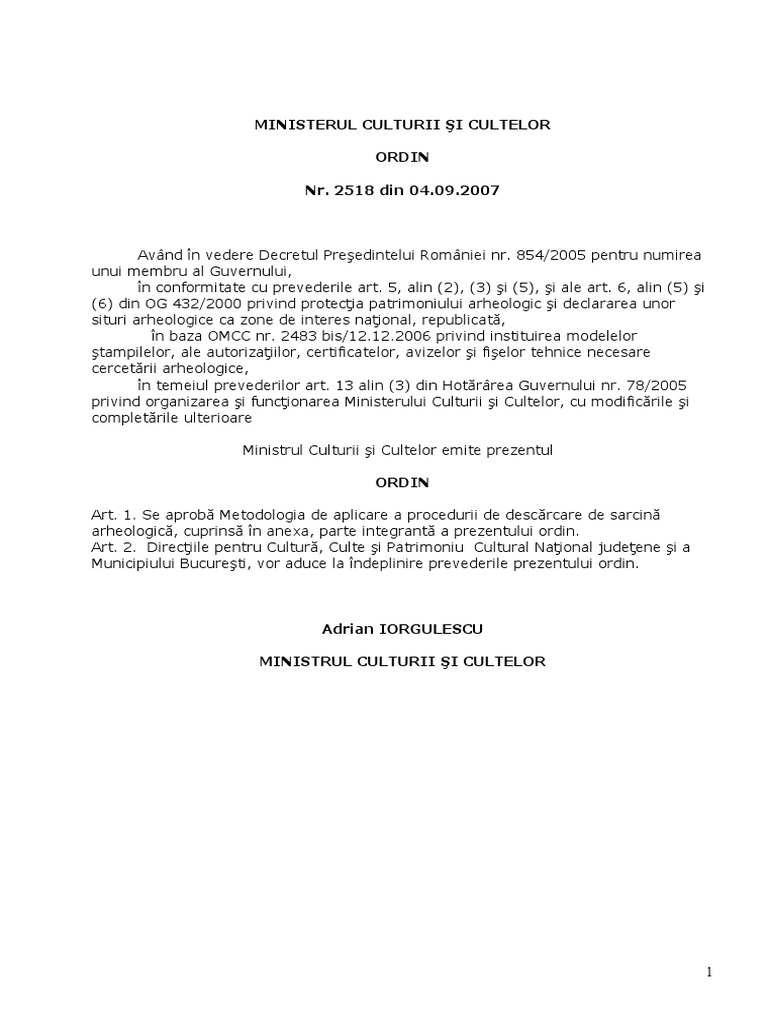 Ordinul Ministrului Culturii E I Cultelor Nr 2435 Archaeoheritage