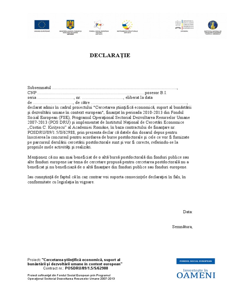 Doc Declaratie La Angajare Seli Dia Academia Edu