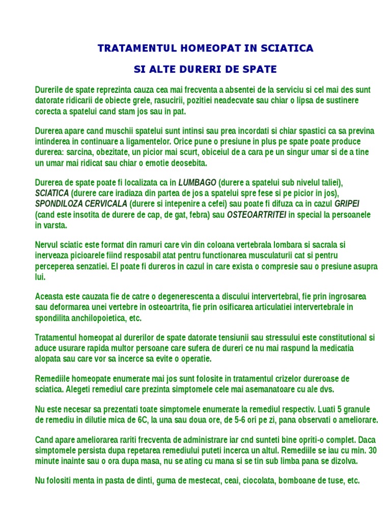 Tratamentul Homeopat In Sciatica Si Alte Dureri De Spate Lumbago Sciatica Spondiloza Cervicala Gripei Osteoartritei