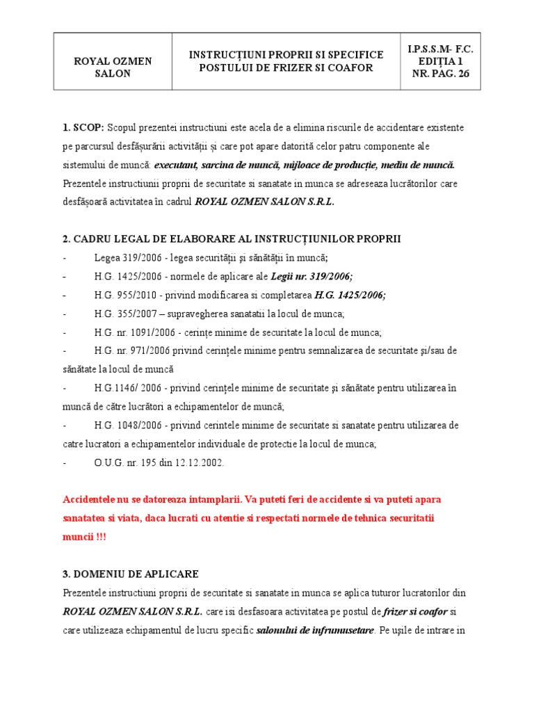 Norme Generale De Protectie A Muncii Si Securitatea Muncii Intr Un Salon De Coafura Si Infrumusetare