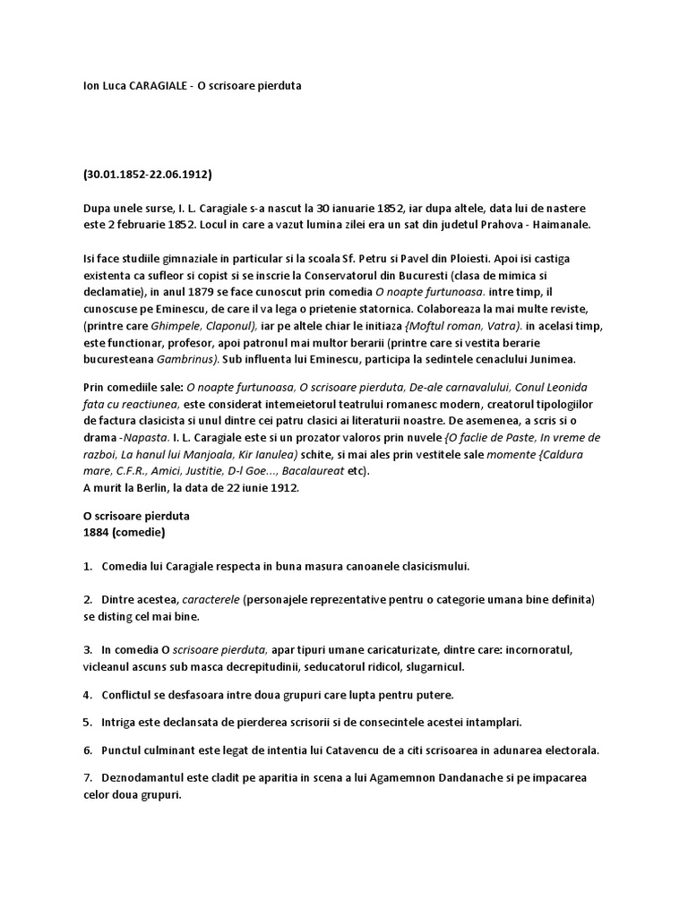 O Scrisoare Pierduta De I L Caragiale Comentariu