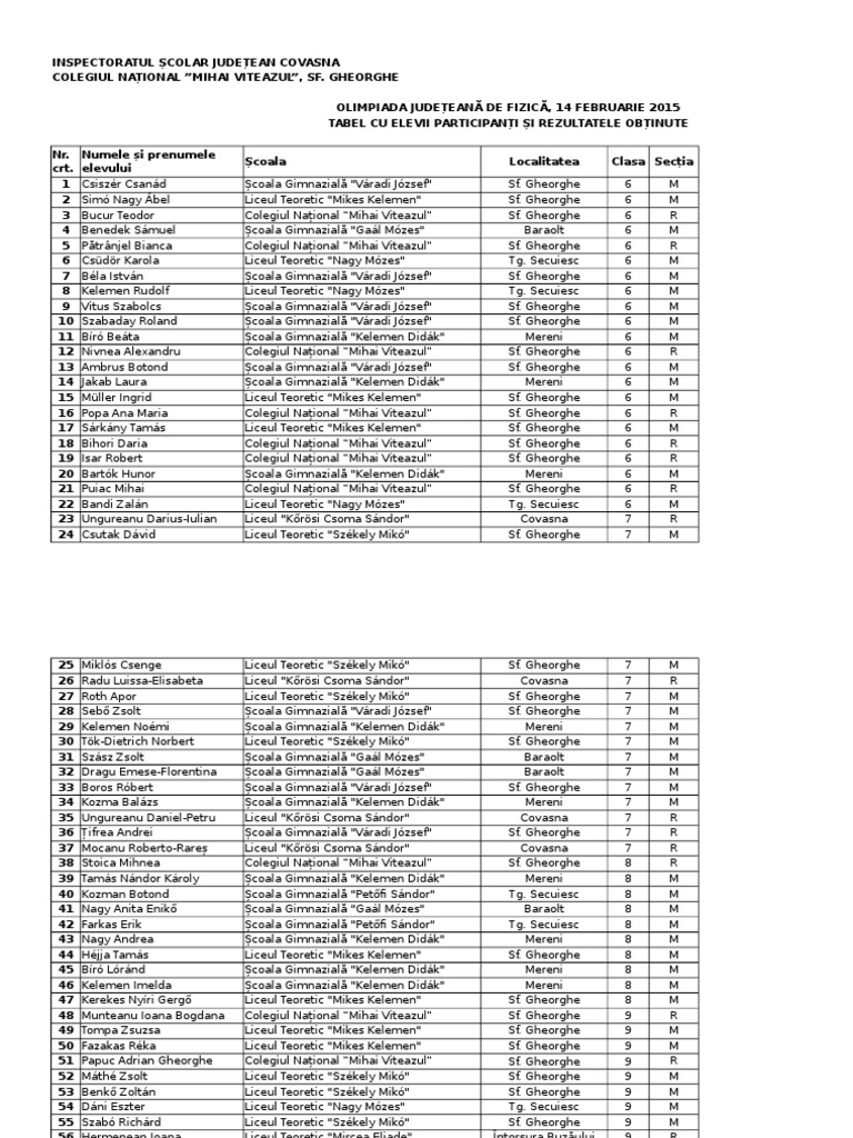 Rezultate Olimpiada De Fizica Covasna 2015