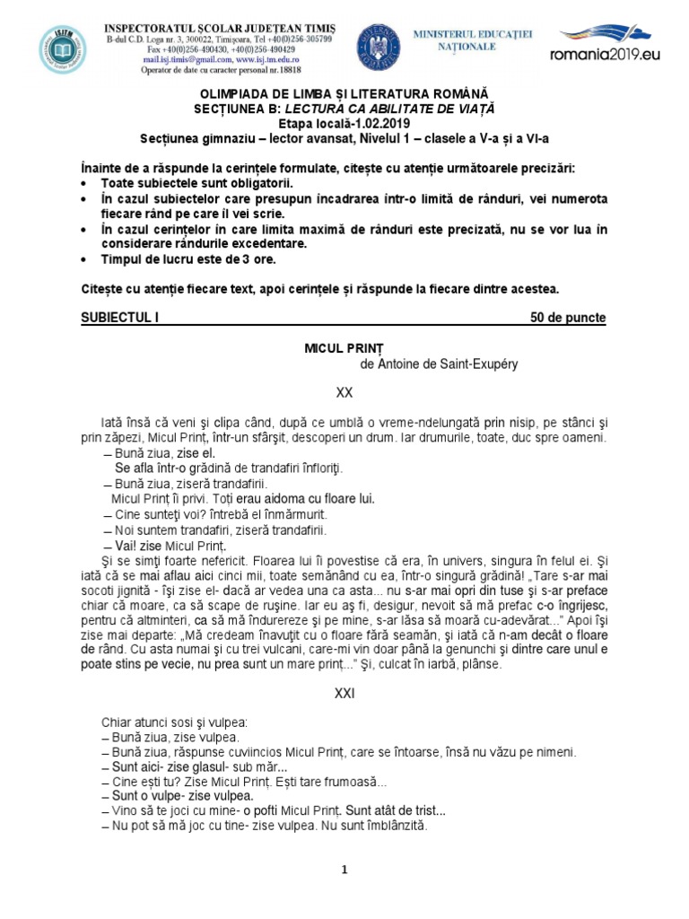 Subiecte Olimpiada Nationala De Limba Si Literatura Romana