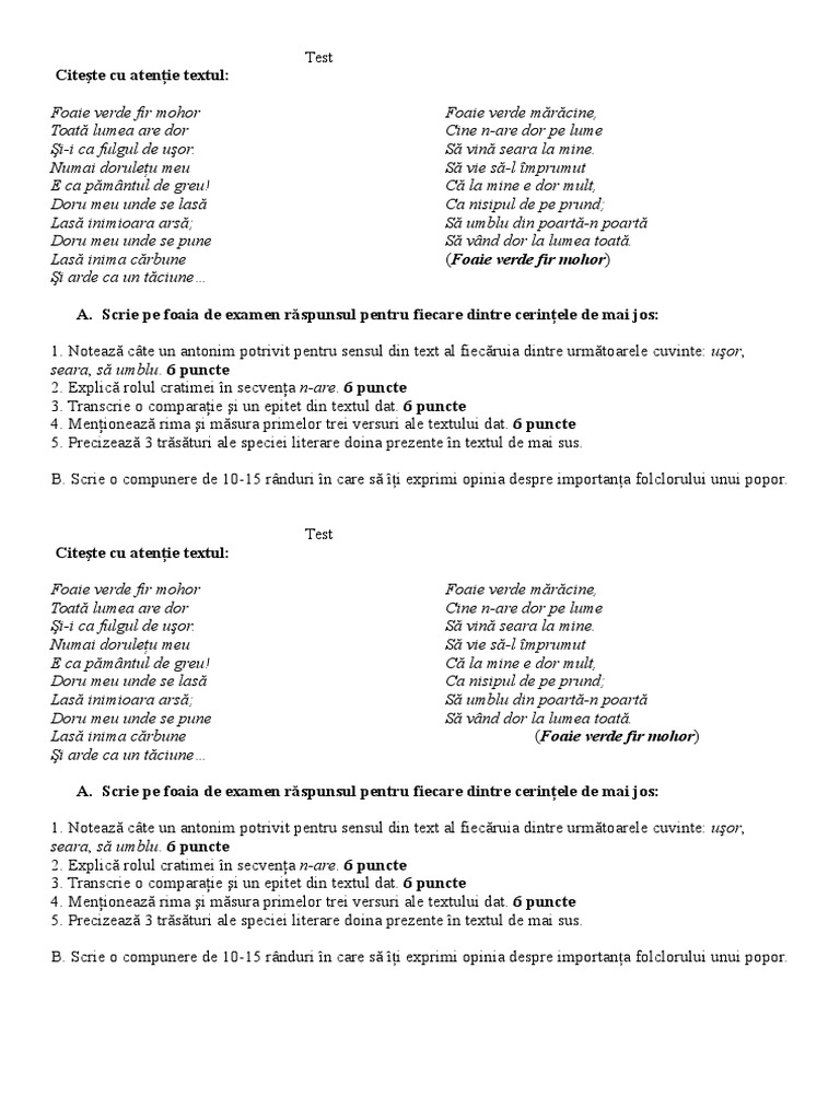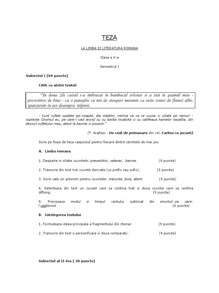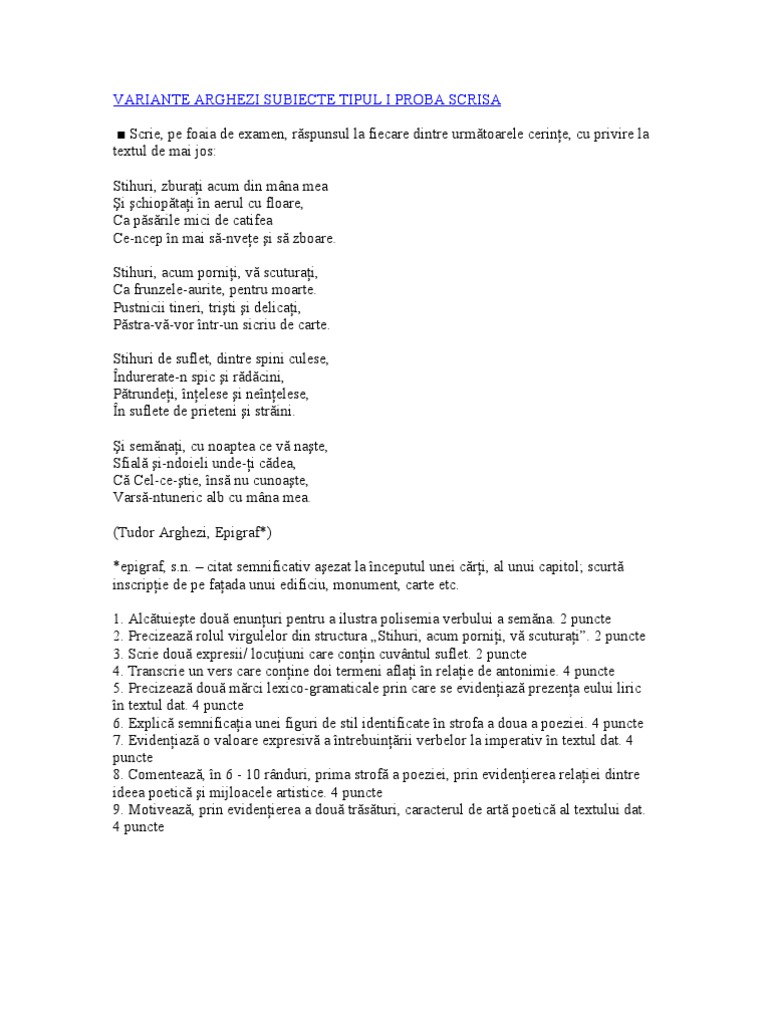 Variante Arghezi Subiecte Tipul I Proba Scrisa