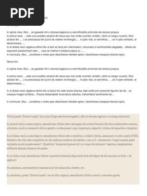 Prezintă In 30 50 De Cuvinte Aducă 3 5 Randuri Semnificația Titlului Poeziei Prin Raportare La Brainly Ro