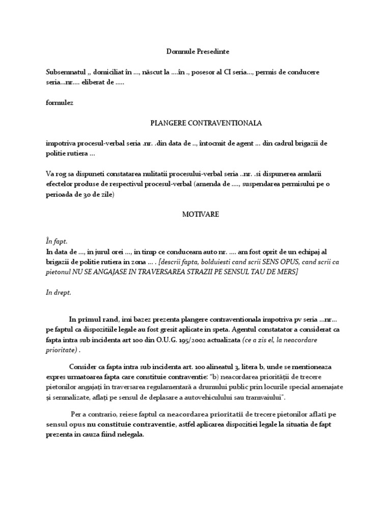 Proces Verbal Contraventie Intocmit Gresit