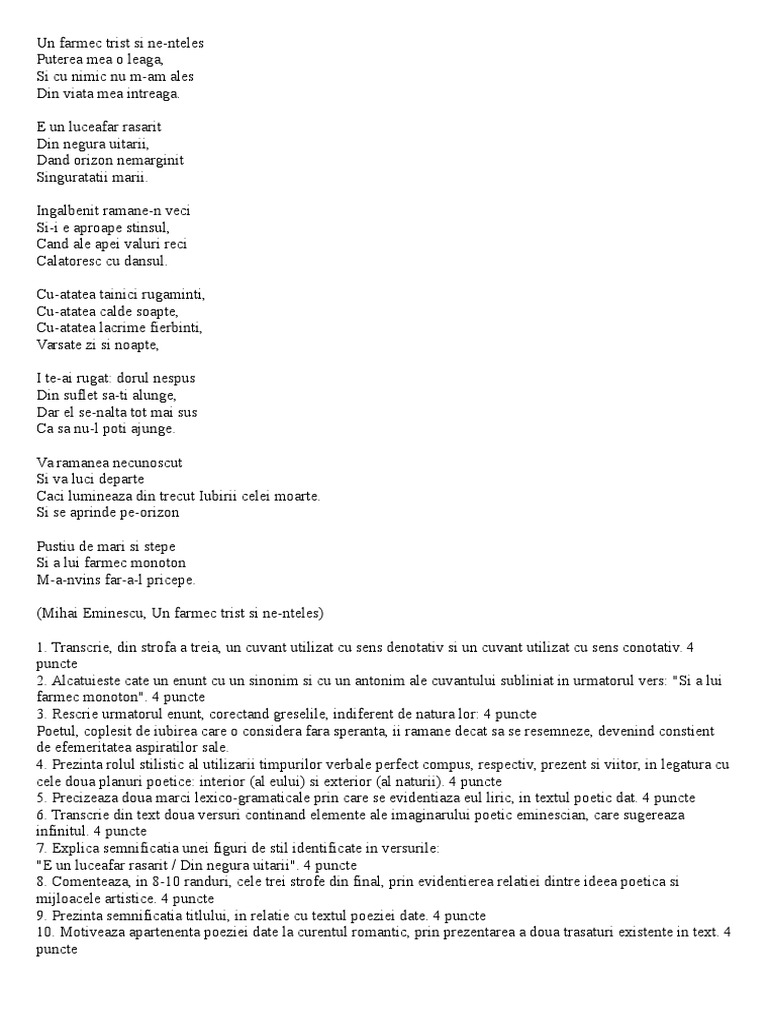 Simulare Bac 2019 Subiecte Si Bareme La Limba Romana