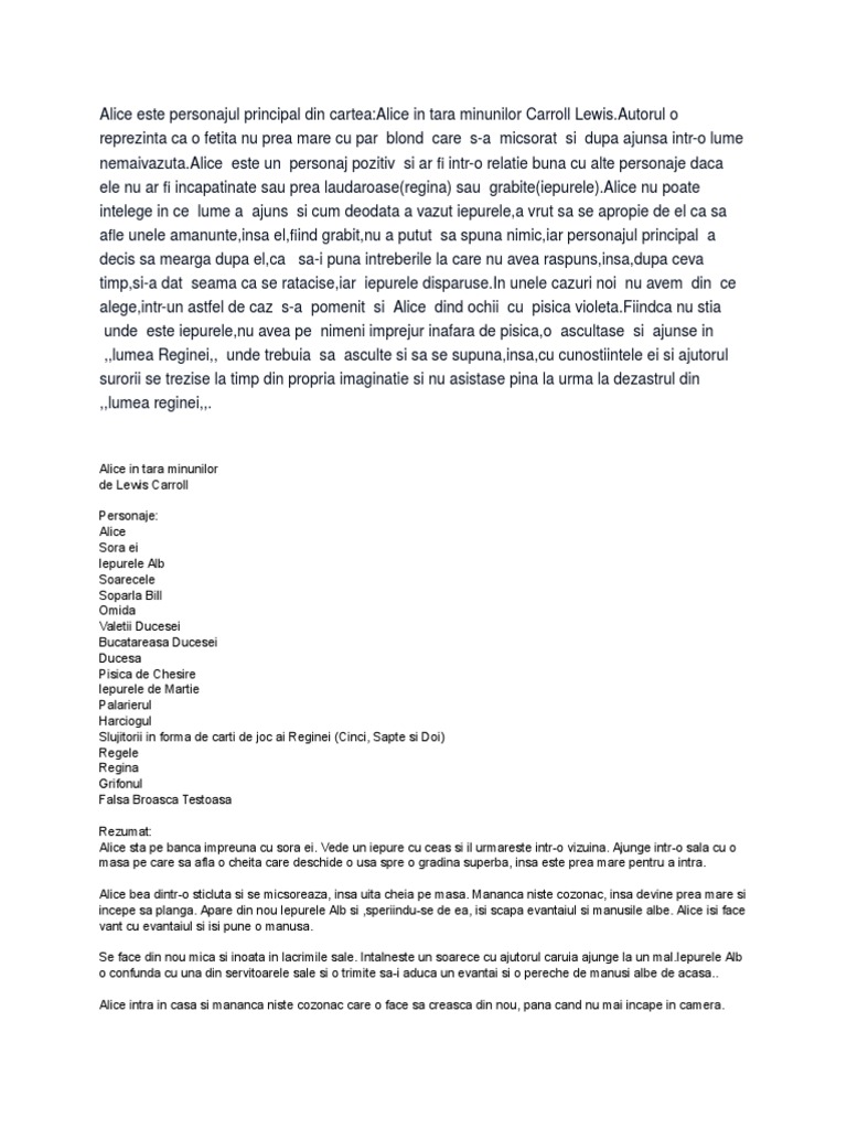 Alice In Tara Minunilor Un Rezumat Al Cartii Pe Capitole Personajele Alice In Tara Minunilor Literatură 2020