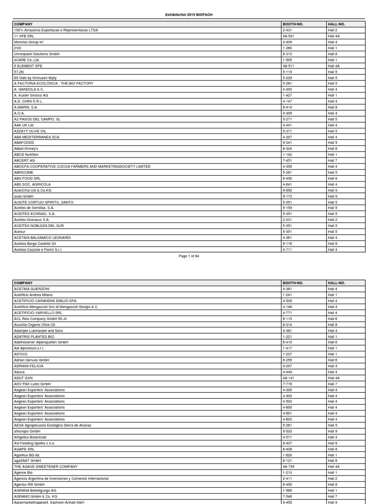 Exhibitiors List Food And Drink Food Wine