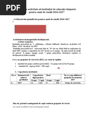 Raport De Activitate Al Instituţiei De Educaţie Timpurie