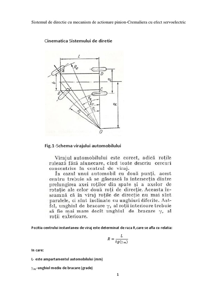 Cinematica Sistemului De Diretie Sistemul De Directie Cu Mecanism De Actionare Pinion Cremaliera Cu Efect Servoelectric