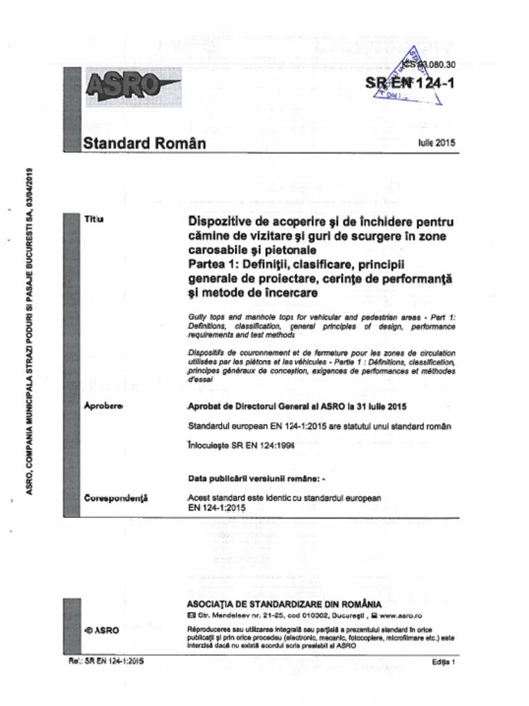 Sr En 124 1 2015 Dispozitive De Acoperire Pentru Camine Definitii