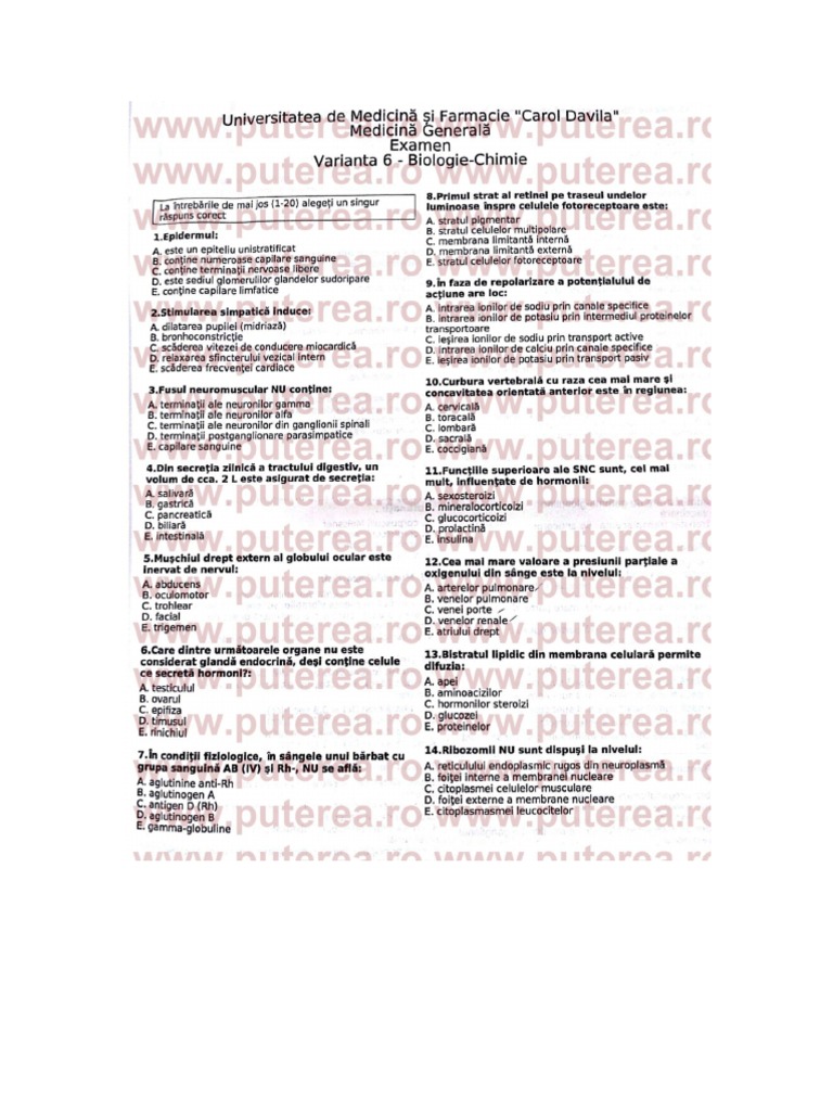 Pervamlearn Blog Archive Subiecte Examen Admitere Carol Davila